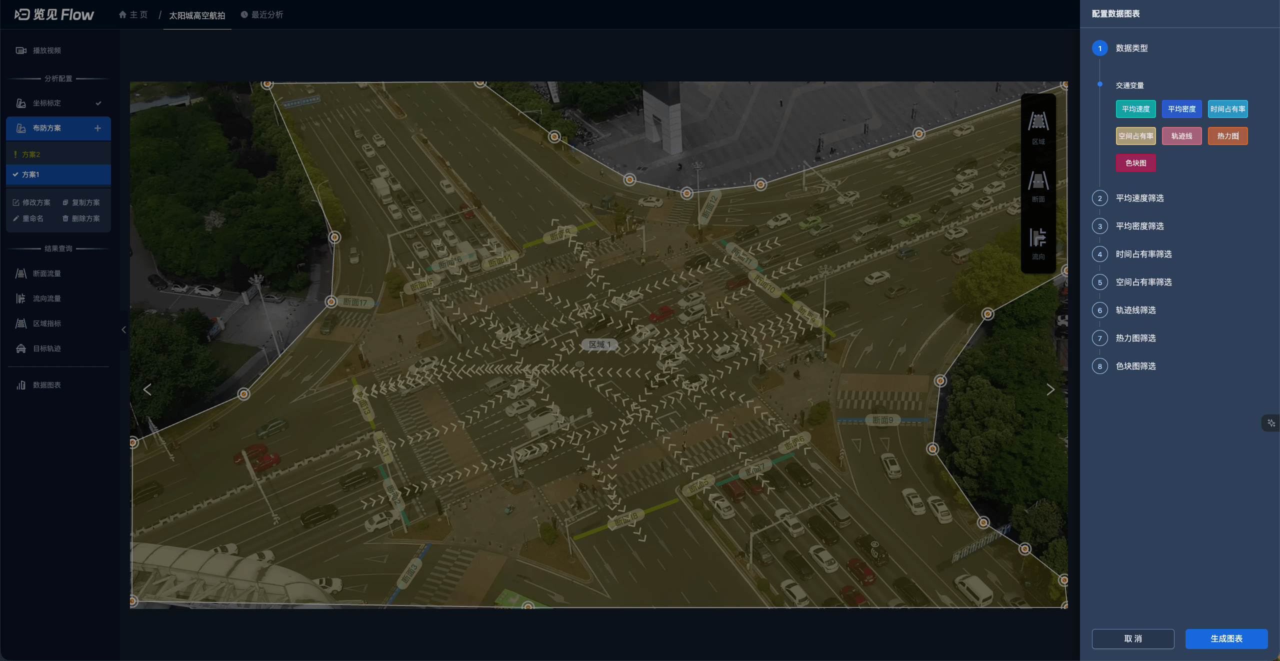 用鼠标交互式地在视频画面上自定义您想要分析的各个区域、断面和流向。
